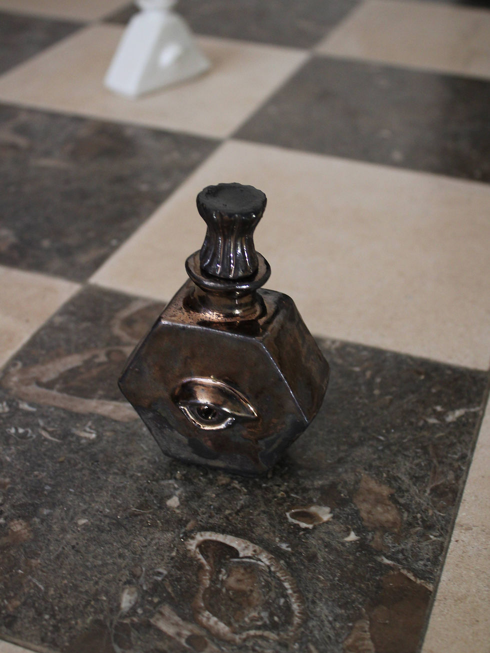 Each bottle in the *Maison du Grand Œil* collection stands as both a vessel and a voice — a sculptural object designed not just to hold oil or perfume, but to carry meaning, history, and visual presence. Their forms are deliberately varied: this diversity is not random, but rather a curated constellation of references — perfume bottles, surrealist sculptures, and even brutalist architecture. These bottles live at the intersection of art and utility, their surfaces whispering a quiet dialogue between the past and future.